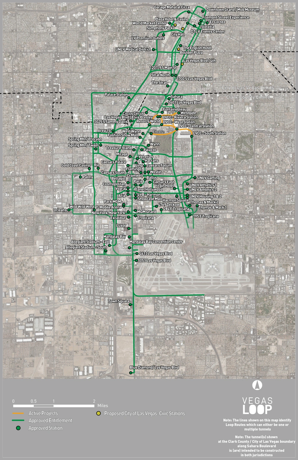 拉斯维加斯环线仅仅 Boring 公司宏伟蓝图中的第一步,该公司现已获得了拉斯维加斯别的 81 个站点(Las Vegas Loop)的制作答应,整个网络被称为“拉斯维加斯环线”(Las Vegas Loop)。Boring 公司正紧锣密鼓地进行施工,从 LVCC 地道延伸至行将制作的新车站。在其官网上能够看到获批站点的地图,其间已建成的 LVCC 环路用橙色标明。