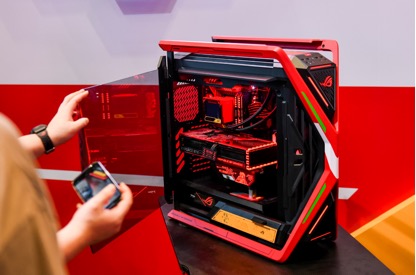 装备方面,旗舰ROG全家桶选用了ROG MAXIMUS Z790 EXTREME主板,24+1供电模组(105A)调配AI智能优化2.0,轻松驾御13代酷睿处理器。AniMe Matrix光显矩阵屏和全彩OLED显现屏,令主机个性化十足。还装备双雷电4,万兆+2.5G双有线网卡等,可谓崇奉神器。